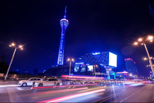 5月15日晚,一場絢爛多彩的點亮儀式在成都339電視塔(又稱“天府熊貓塔”)準時上演。路過市中心的朋友都發現339電視塔發生的變化,整座塔身亮起了藍色的燈光,塔身上“創維OLED,為愛發光”“創維OLED,愛在全家”“創維OLED,換就現在”的文字循環閃現,引得行人駐足留念。