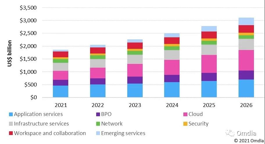 縱觀全球企業(yè)服務(wù)及相關(guān)新興技術(shù)市場(chǎng),Omdia預(yù)計(jì):