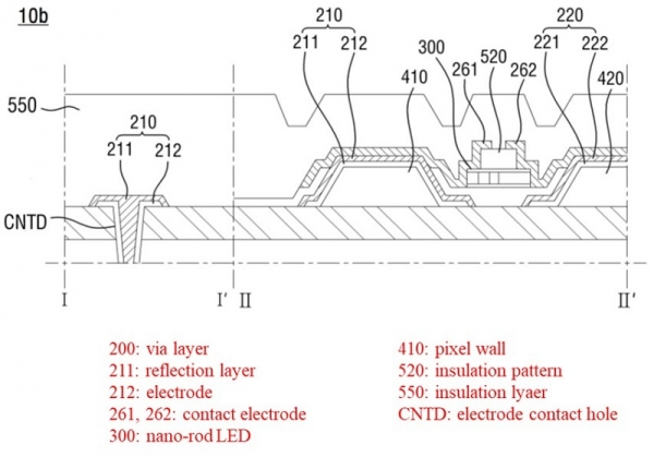 UBI Reseach公布了其發(fā)現(xiàn)的三星顯示器提交的核心專利,其中展示了 QNED 顯示面板的結(jié)構(gòu)。