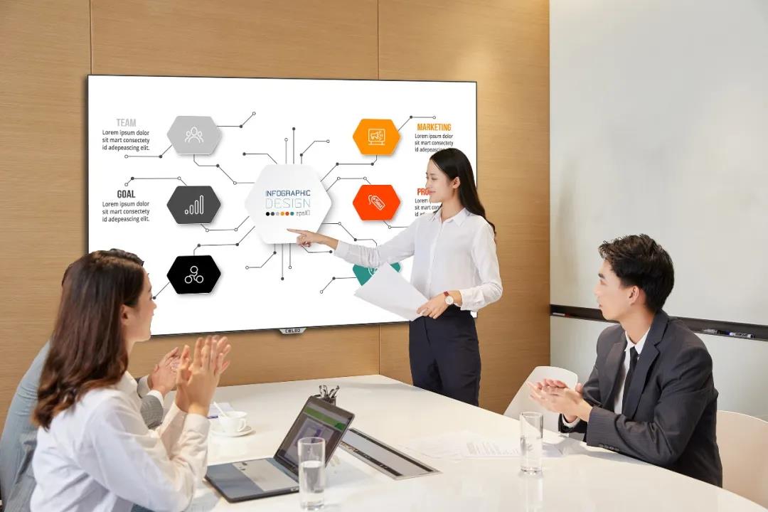 COLED品牌的E-Board系列是科倫特自主研發,集成全球領先的 LED小間距技術,智能安卓系統,會議系統于一體的AIoT智能生態LED商顯大屏系統。全球首創超薄全面屏LED一體機,標準2K/4K高清,多種尺寸, 滿足客戶更多空間場景需求,自主研發專利支架,穩定可靠、簡約美觀。