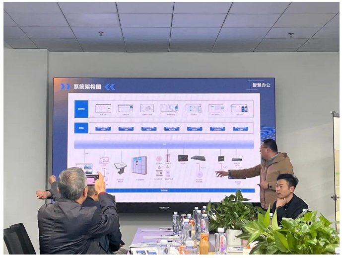 在活動中,我司相關負責人先后向領導們詳細介紹了公司的商顯產品及智慧辦公解決方案,其中多種創新性的智能化場景應用方案,都是德睿全體人員不斷開拓、總結的成果,彰顯了我司在研發和創新方面的實力與決心。同時鑒于我司在商顯領域及智慧辦公領域展現出的巨大成果及發展潛力,華東院領導們也對今后雙方的合作前景表示充滿信心。
