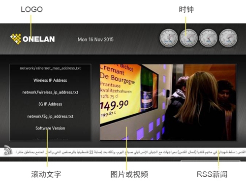 ONELAN是專業數字公告系統設備提供商,所有系列的產品均圍繞易于操作、便于安裝和低成本高效率的理念進行設計生產制造的。