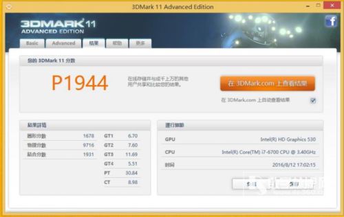 作為一款高端商顯硬件產品,除了CPU性能需要考究外,圖形處理能力也非常重要。杰和采用的是英特爾Skylake平臺CPU,集成顯示核心,圖形性能處理到底有多優秀?我們通過植入i7-6300進行3D Mark Vantage測試。