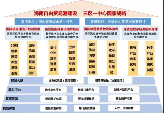 方案指出,海南省要全面部署建設自由貿易試驗區和中國特色自由貿易港,著力建設國際信息通信開放試驗區、打造精細智能社會治理樣板區、創建國際旅游消費智能體驗島、構筑開放型數字經濟創新高地、統籌部署智慧海南大腦支撐體系,將海南打造成為全球自由貿易港智慧標桿。