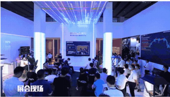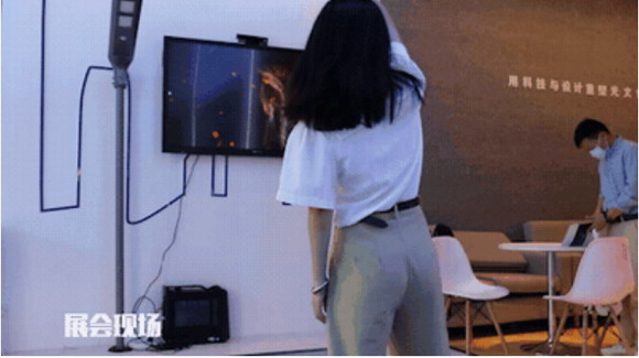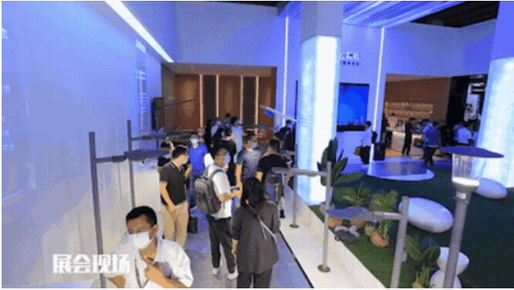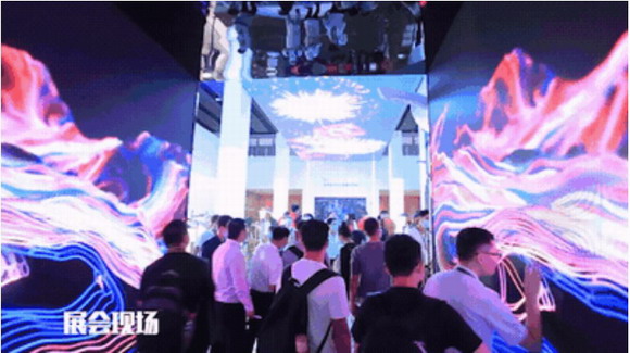位于展位上空的天幕屏,以絢麗的色彩、動態(tài)的畫面,引得現(xiàn)場觀眾紛紛打卡留念。