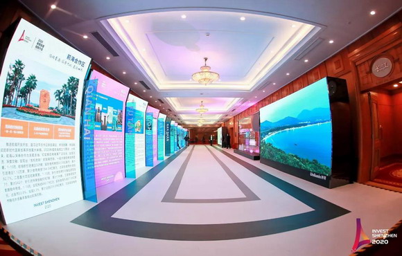 會場外,一條特別設置的“招商項目展示走廊”尤為引人注目。展示走廊以洲明UGN系列LED大屏為顯示載體,以高清的畫面、細膩的色彩,向參會嘉賓全面展示深圳發展成績與美好前景。