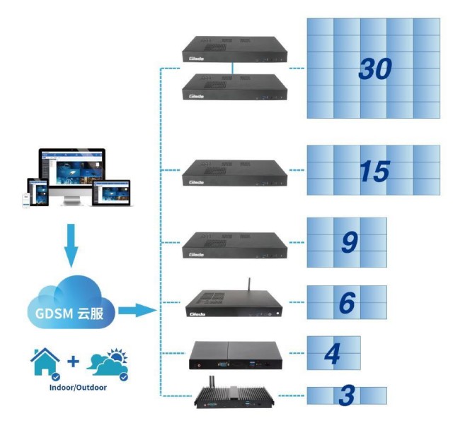 杰和科技多屏拼接控制器與GDSM系統結合,聚焦市場需求,打造的新一代數字標牌軟硬一體化應用平臺。在數字標牌拼接管理、操作維護以及系統前端兼容擴展方面具備變革性創新,可以進一步為客戶帶來價值提升,助力智慧零售、政企辦公、醫療服務、公共交通、酒店娛樂以及更多行業進行數字化、智能化升級。