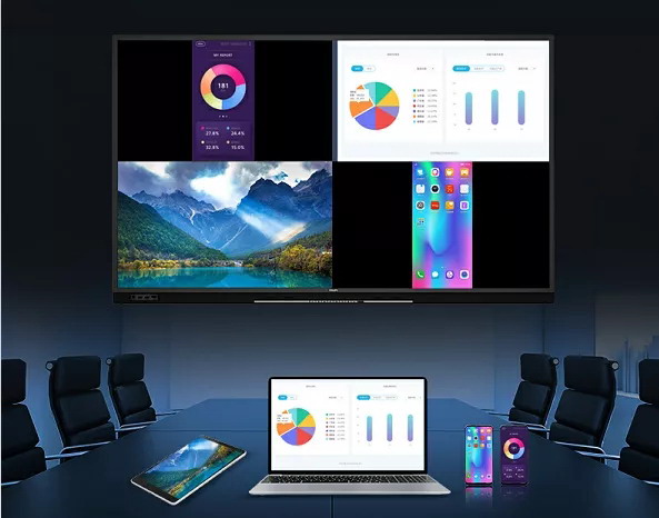 飛利浦智能會(huì)議平板支持電腦、平板、手機(jī)等無線投屏,最多可滿足4臺(tái)設(shè)備同時(shí)進(jìn)行批注。通過無線傳屏連接到會(huì)議平板,一鍵即可傳屏,同時(shí)支持觸摸回傳,可觸屏操作電腦,大大方便內(nèi)容修改。