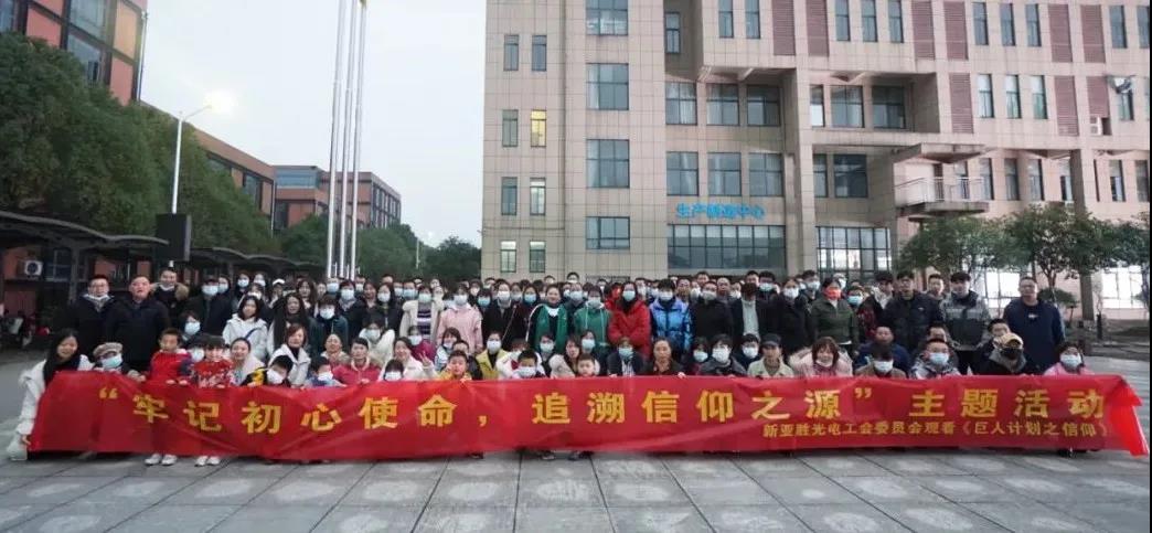 1月9日,中共湖南新亞勝光電股份有限公司支部委員會聯合湖南新亞勝光電股份有限公司工會委員會,共同組織全體員工開展“牢記初心革命,追溯信仰之源”主題活動,全員前往湖南大劇院觀看紅色舞臺劇《巨人計劃之信仰》。這是新亞勝光電2022年第一堂紅色主題課,傳承紅色基因,凝聚磅礴力量。