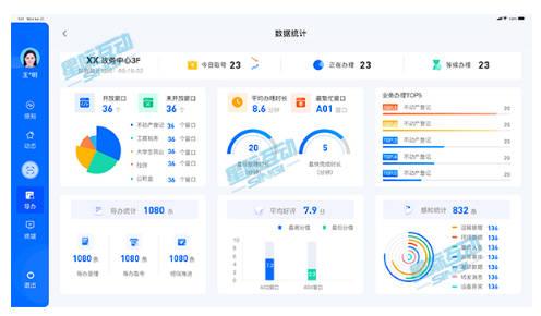 支持通過業務數據匯總自動進行數據統計,統計數據包括但不限于窗口開放率、平均辦理時長、消息推送統計、累計業務辦理排行等;
